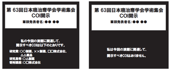 利益相反状態は、学術集会発表時に下記スライドを入れ開示してください。